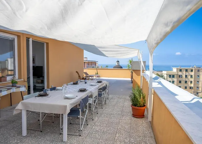 La Terrazza Di Chiavari van 150 m^2 ligt in Chiavari, op 10 minuten rjden vanaf de Santuario di Nostra Signora delle Grazie, en biedt spafaciliteiten zoals een solarium. Het strand 1-slaapkamer appartement heeft een terras met de zee.